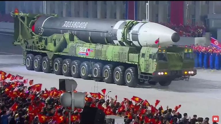 نفذت كوريا الشمالية استعراضا لاسلحتها الجديظة و بخاصة الصاروخ الذي تفوق سرعته سرعة الصوت وصوار