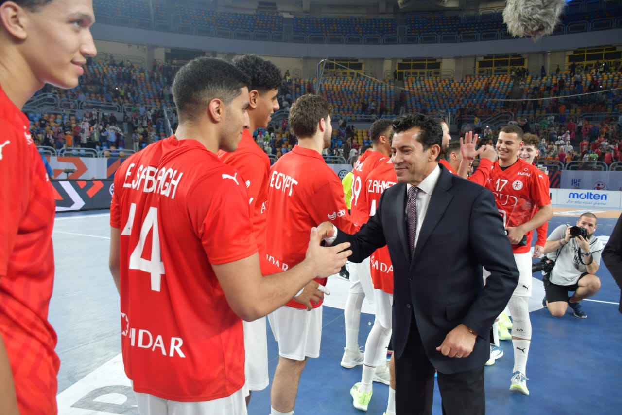 حرص الدكتور أشرف صبحي وزير الشباب والرياضة علي التواجد في مدرجات الصالة المغطاة الرئيسية باستاد القا