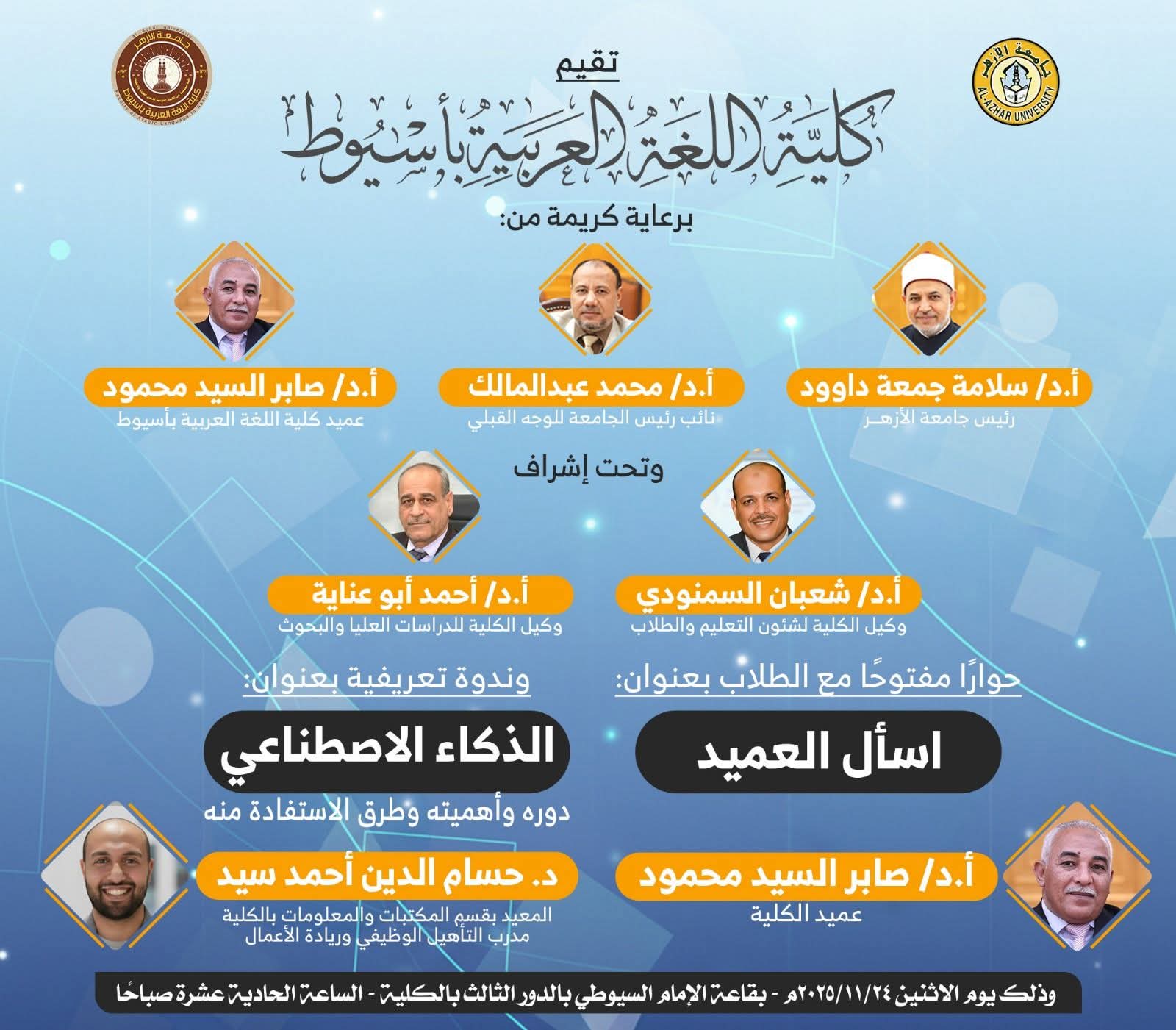 برعاية فضيلة الأستاذ الدكتور سلامة جمعة داود رئيس جامعة الأزهر، وفضيلة الأستاذ الدكتور محمد ع