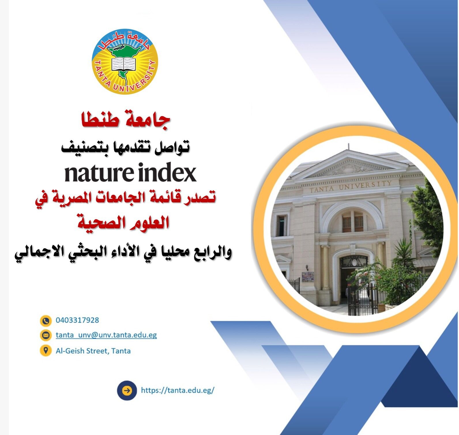 أعلن الدكتور محمد حسين رئيس جامعة طنطا عن تحقيق إنجاز بحثي جديد في تصنيف Nature Index للفترة من 1 ي