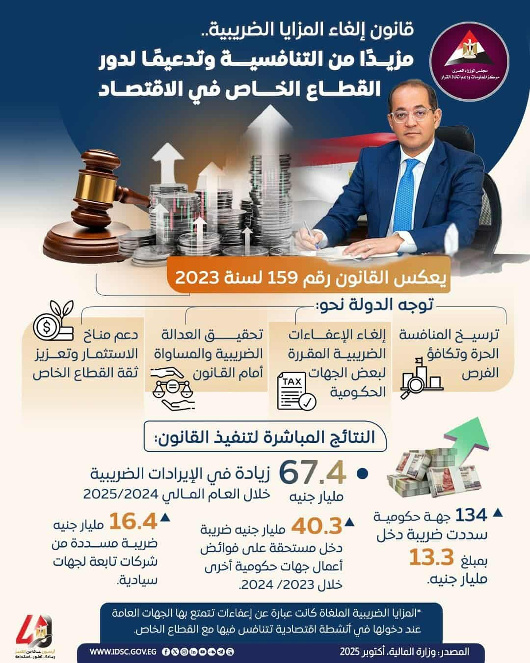 إنفوجراف..67.4 مليار جنيه إيرادات ضريبية من بعض الجهات الحكومية