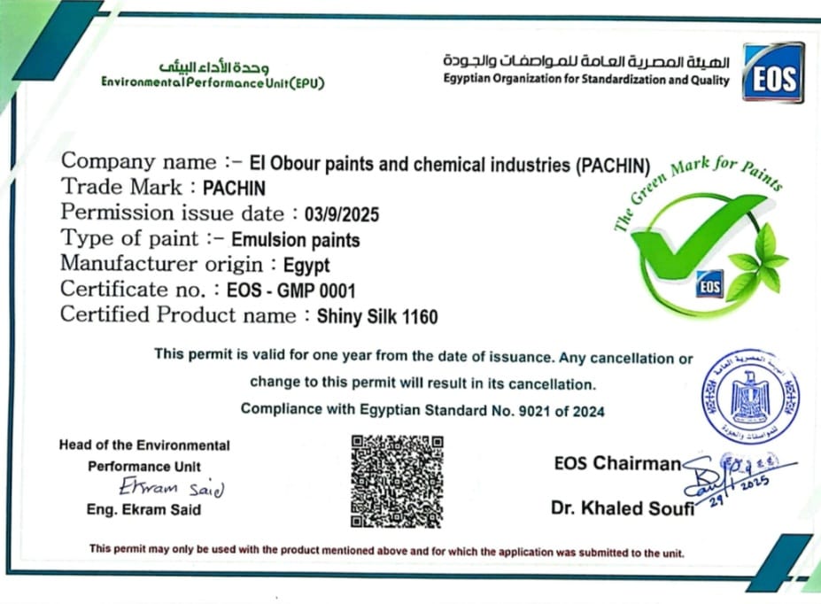 الهيئة المصرية العامة للمواصفات والجودة تسلم أول علامة خضراء للدهانات لشركة العبور للبويات والصناعات الكيماوية "باكين"