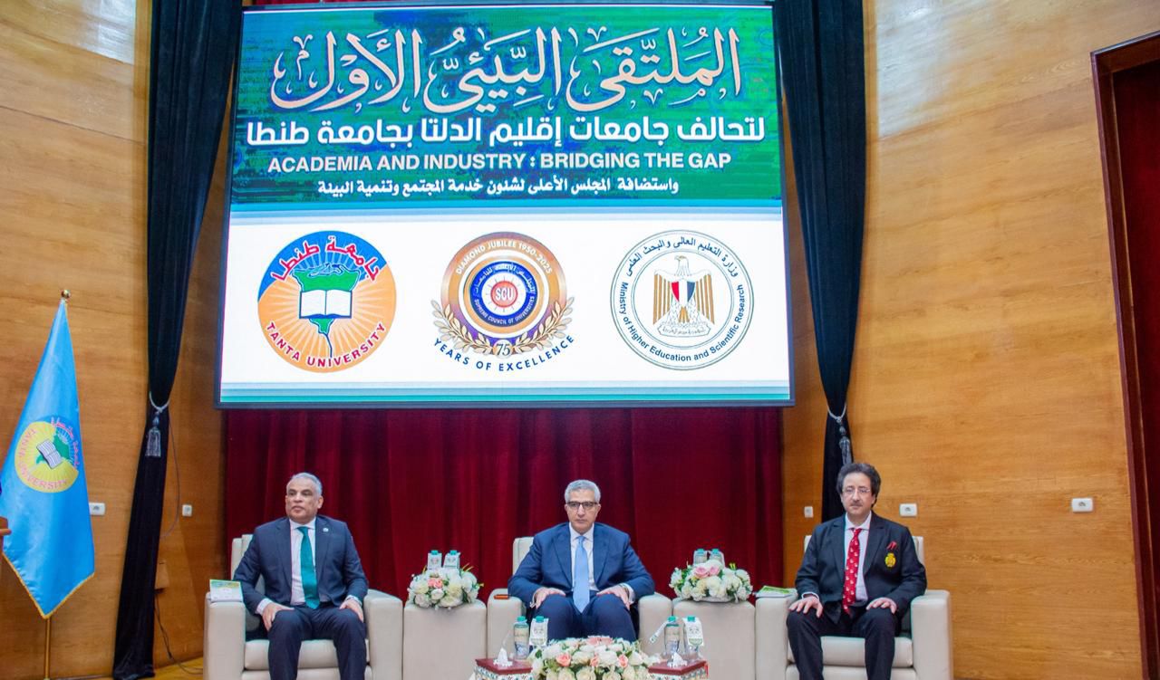 بدأ اليوم الأربعاء جامعة طنطا فعاليات الملتقى البيئي الأول لتحالف جامعات إقليم الدلتا، تحت شعار «الأكاديميا والصناعة: نحو سد الفجوة»، بحضور الدكتور مصطفى رفعت الأمين العام للمجلس الأعلى للجامعات، والدكتور محمد حسين رئيس جامعة طنطا، والدكتور أشرف حنيجل رئيس جامعة السويس، والدكتور عبد الفتاح صدقة رئيس جامعة طنطا السابق ورئيس جامعة السلام، والدكتور محمود سليم نائب رئيس الجامعة لشئون خدمة المجتمع وتنمية البيئة، والدكتور حاتم أمين نائب رئيس الجامعة لشئون الدراسات العليا والبحوث، والدكتور السيد العجوز نائب رئيس الجامعة لشئون التعليم والطلاب، والدكتور عبد الحكيم عبد الخالق رئيس جامعة طنطا الأسبق، والدكتور عماد عتمان نائب رئيس الجامعة السابق لشئون خدمة المجتمع وتنمية البيئة، ونواب رؤساء الجامعات لشئون خدمة المجتمع وتنمية البيئة، وعمداء ووكلاء الكليات، وأعضاء هيئة التدريس، وعدد من الصحفيين والإعلاميين، والطلاب.