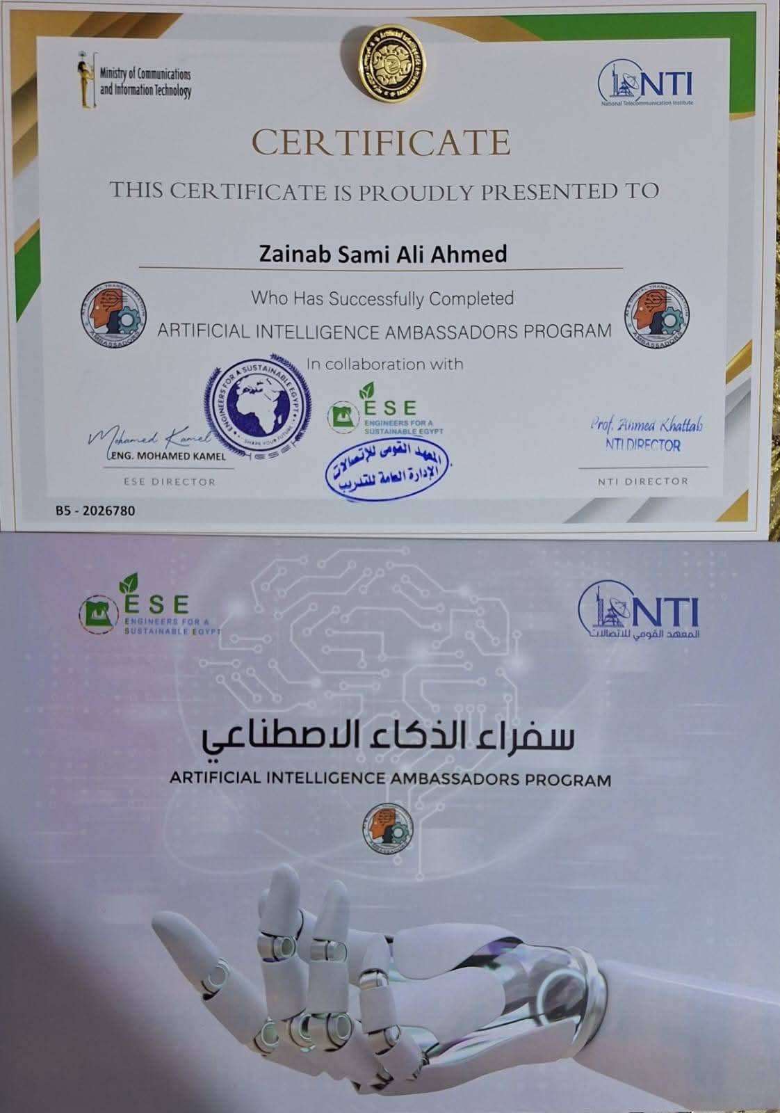 وها أنا اليوم بعد تعب وعناء أخطو خطوة جديدة في مسيرتي العلمية والاجتماعية، تم اختياري سفيرا للذكاء الاصطناعي رسميآ من المعهد القومي للاتصالات