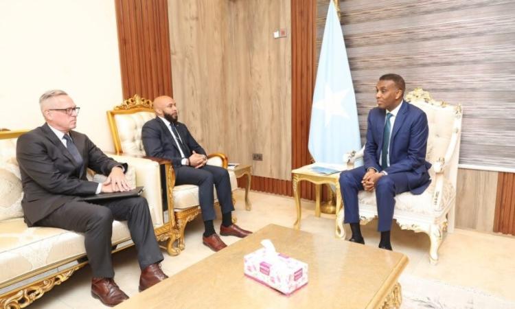 بحث رئيس الوزراء الصومالي حمزة عبدي بري، مع السفير الأمريكي لدى البلاد جاستن ديفيس، سبل تعزيز العلاقات الثنائية بين البلدين في مختلف المجالات، وكذا القضايا الأمنية، ومكافحة الإرهاب، والوضع الإنساني في البلاد.