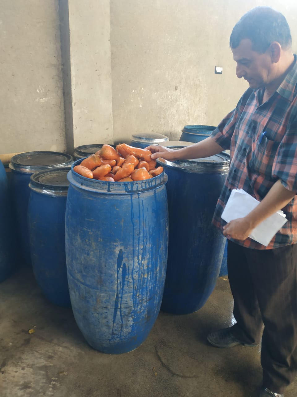 وفى نفس السياق تم ضبط مصنع لتصنيع المخلل وضبط جميع (١٧٠٠) الف وسبعمائة كيلو جرام مخلل بدون بيانات توضح تاريخ الإنتاج والانتهاء مخالفاً للقرار الوزاري رقم ١٠٧ لسنة ١٩٩٤..