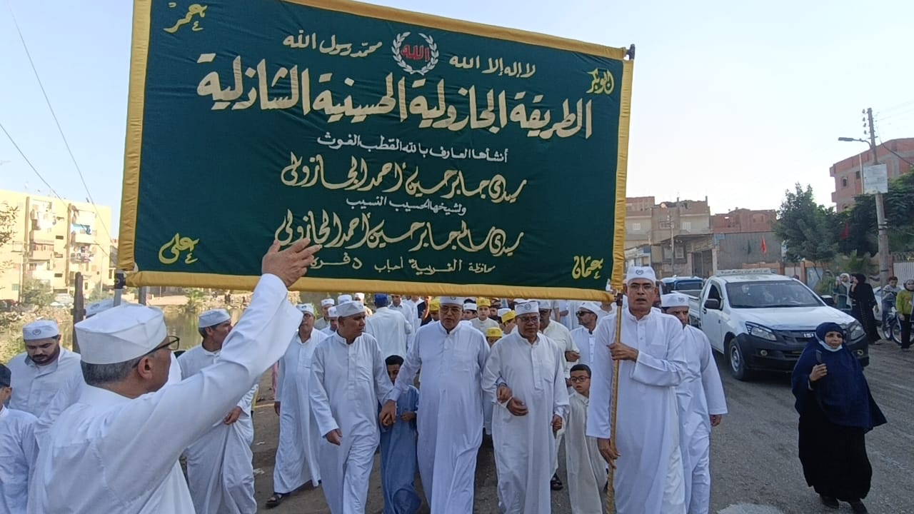 وجاب المحتفلون والأطفال شوارع القرية في مسيرة لمريدى الطريقة، مرددين الأناشيد والابتهالات والمدائح الدينية والنبوية