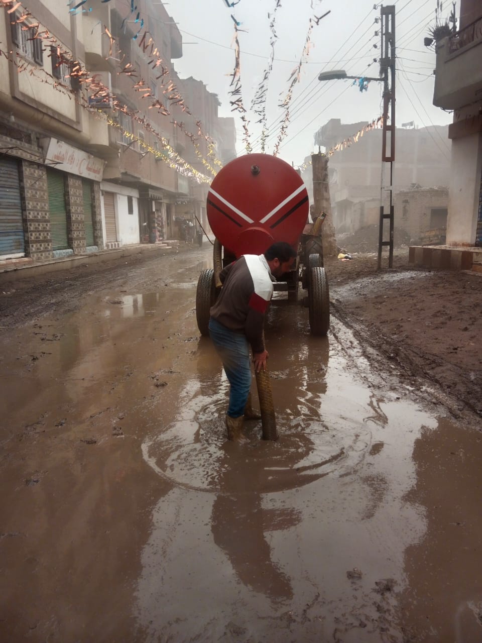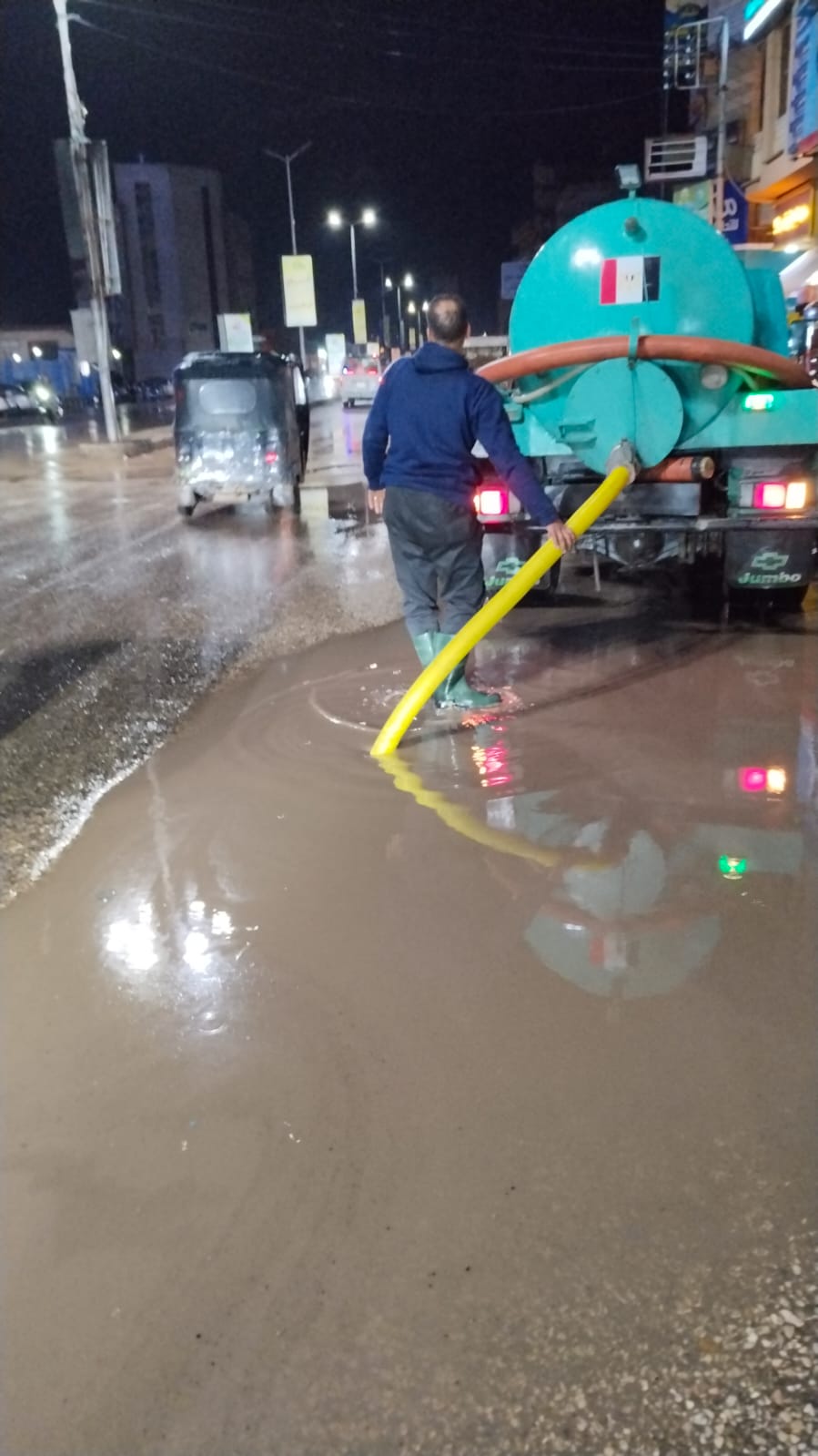 وأكد المحافظ أن فرق العمل الميدانية تواصل جهودها على مدار الساعة، من خلال الانتشار المكثف للمعدات وسيارات شفط المياه، ورفع تجمعات مياه الأمطار أولًا بأول، خاصة بالمناطق المنخفضة والطرق الحيوية، بما يضمن تحقيق السيولة المرورية والحفاظ على سلامة المواطنين.