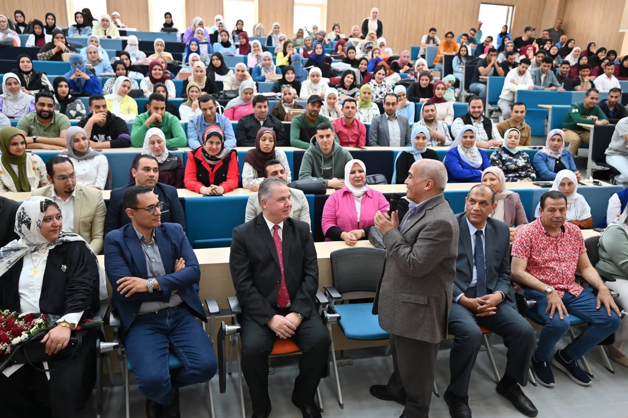 وأقيم الحفل برعاية وحضور الدكتور منتصر دويدار، رئيس الجامعة، وبمشاركة الدكتور محمد رمضان وكيل الكلية، و وليد قطب أمين عام الجامعة، فضلاً عن حضور واسع من رؤساء الأقسام، وأعضاء هيئة التدريس، والجهاز الإداري، والعاملين بالجامعة.