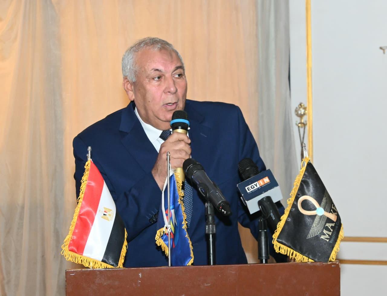 و من جانبه اشاد اللواء أ.ح/ محمد الزملوط – محافظ الوادي الجديد، بالتعاون المشترك بين محافظة الوادي الجديد ووزارة الزراعة، ومحافظة البحيرة والقوات المسلحة التي لم تتوانَ أو تتأخر عن أي التزام عليها ، مؤكدًا على عمق التعاون بين المحافظات في دعم التنمية الزراعية، كما استعرض ملخصا حول جهود التنمية الشاملة بمحافظة الوادي الجديد وما تتمتع به من فرص واعدة في مجالات الاستثمار الزراعي والإنتاج الحيواني، مشيرًا إلى ما تحققه من نجاحات في مجالات الاستصلاح الزراعي والتقنيات الحديثة لمكافحة الآفات، ومنها تطبيق تقنية النبضات الرنينية الحيوية.