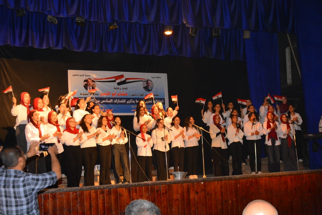 وتضمنت الفعاليات مجموعة من الفقرات الفنية والغنائية الوطنية الجماعية والفردية، من بينها فقرة متميزة لذوي الهمم من مدرسة الأمل للصم، إلى جانب استعراضين بعنوان "جنود بواسل" و"مصر يا أم الدنيا"، قدمهما طلاب وطالبات مدارس التعليم الأساسي من مختلف مراكز محافظة أسيوط، في مشهد وطني مفعم بالفخر والاعتزاز بانتصارات أكتوبر المجيدة.