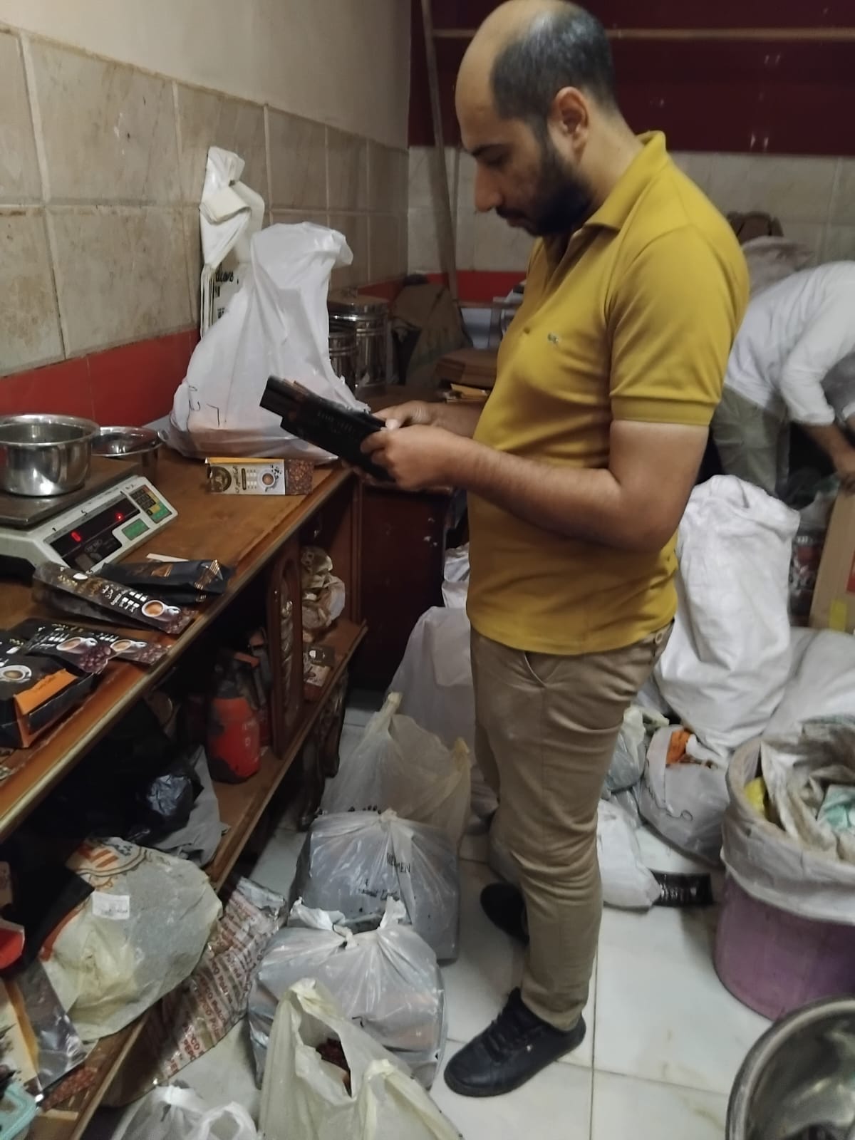 و كذلك ضبط مطحن بن يقوم بالطحن والتعبئة باستخدام علامة تجارية و تم تحريز عدد ٣٨٨ عبوة بن ٢٥٠ جم بدون بيانات إنتاج