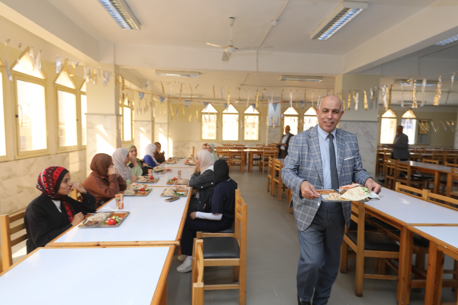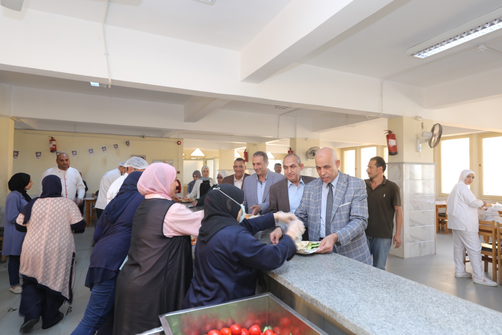 وخلال جولته، حرص الدكتور إسماعيل إسماعيل إبراهيم، على تفقد المطبخ الرئيسي وأماكن إعداد الطعام ومخازن الأغذية، للتأكد من توافر معايير السلامة الغذائية وتطبيق اشتراطات الصحة العامة في جميع مراحل إعداد وتقديم الوجبات، كما تفقد صالة الطعام أثناء تقديم وجبة الغداء، وشارك الطلاب تناول الوجبة في أجواء يسودها الود والحوار الهادف.