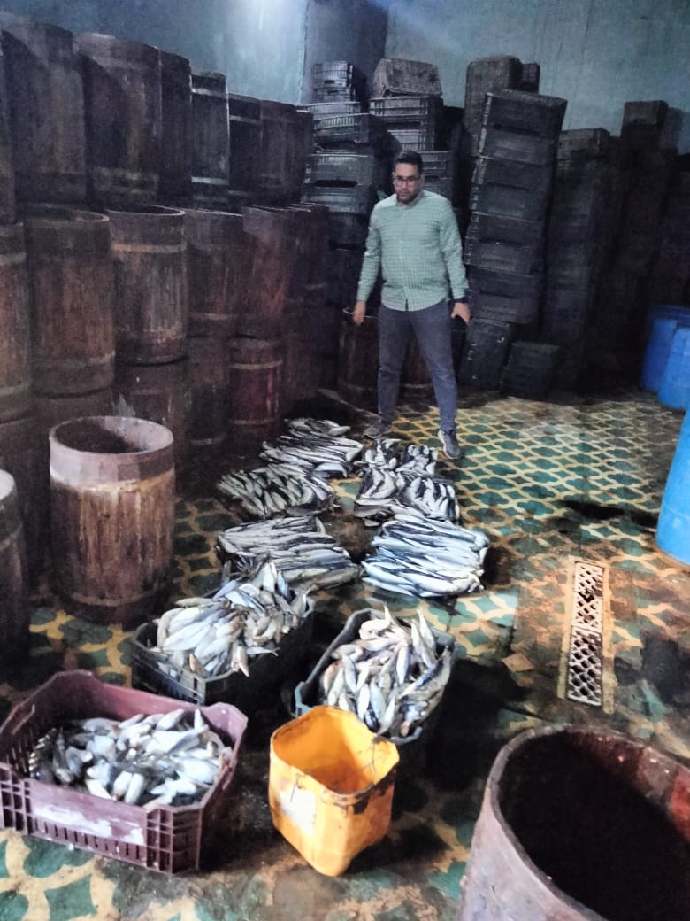 حيث أسفرت جهود إداراه الرقابه التموينيه تحت اشراف احمد ورد مدير الاداره بحملة بمركز زفتى عن ضبط 350 كجم فسيخ داخل 7 براميل خشبية بدون بيانات ومشتبه في صلاحيتها كما تم ضبط 120 كجم هارنج بدون بيانات و ايضا ضبط 50 كجم سردين مجمد داخل برانيك بلاستيك مجهولة المصدر.