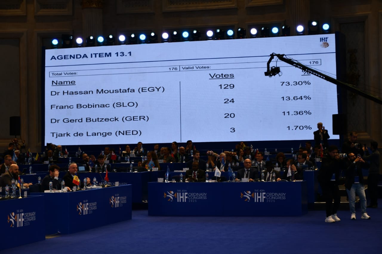 وتفوق المصري حسن مصطفى، على منافسيه الثلاثة في سباق الرئاسة، وهم فرانك بوبيناك من سلوفينيا، وجيرد بوتزيك من ألمانيا، وتجارك دي لانج من هولندا، بعدما حصل على الأغلبية المطلوبة من أصوات الجمعية العمومية، ليؤكد استمرار دعمه الدولي ومكانته المؤثرة داخل منظومة كرة اليد العالمية.
