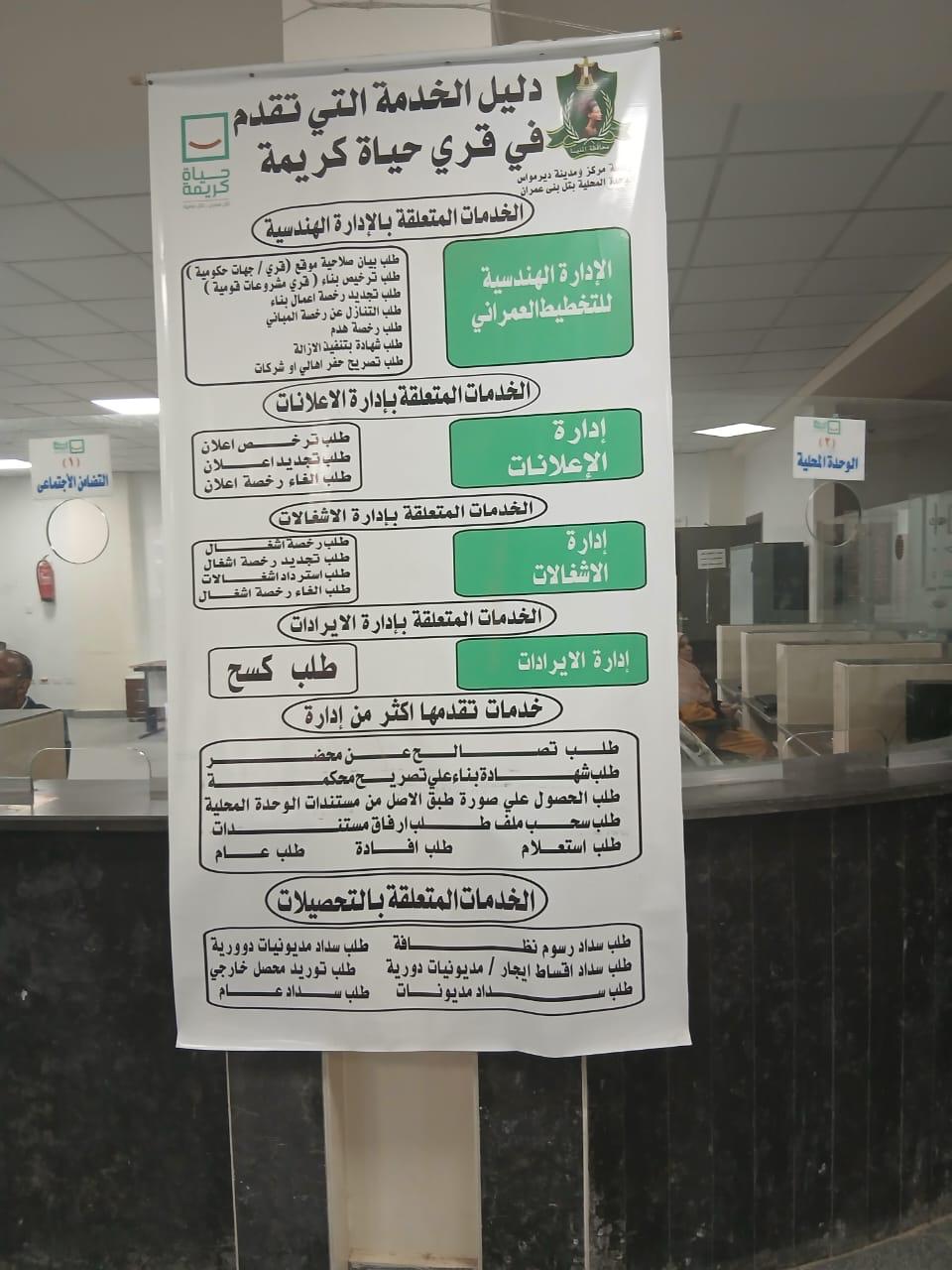 كما شملت الجولة زيارة المركز التكنولوجي بمركز تل بني عمران، للاطلاع على سير العمل، وقياس مدى سرعة إنجاز المعاملات ومستوى الخدمات المقدمة، وذلك في إطار رصد الواقع الفعلي للخدمة، والالتزام بالمدد الزمنية المحددة لكل خدمة، وتفعيل منظومة التحول الرقمي بما يضمن الشفافية والنزاهة، وفصل مقدم الخدمة عن طالبها، إلى جانب تسريع وتيرة العمل في ملفات تقنين الأوضاع، وتوفير كافة سبل الراحة للمترددين على المراكز.