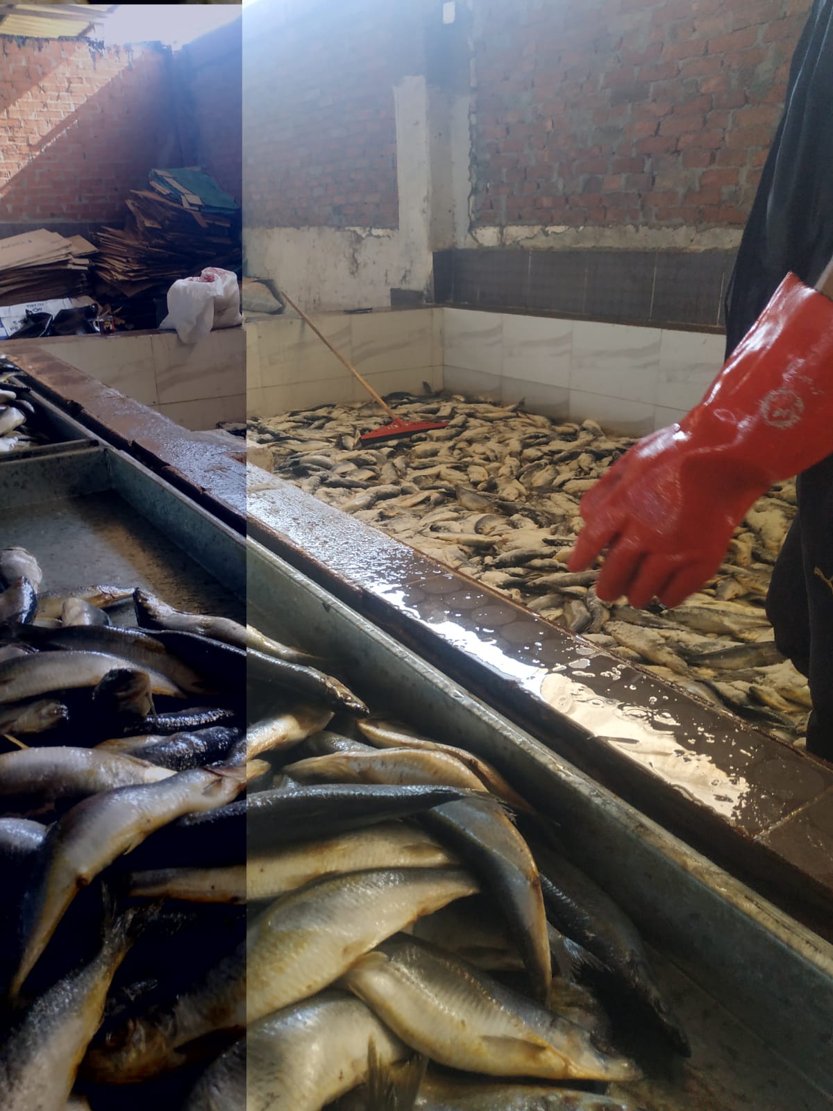 وتم ضبط 150 كرتونة أسماك هارنج مجمدة بإجمالي وزن 3.3 طن، مجهولة المصدر وبدون فواتير، وبالمخالفة للاشتراطات والقرارات الوزارية، حيث تبين استخدامها في التصنيع مع التلاعب في تواريخ الصلاحية.