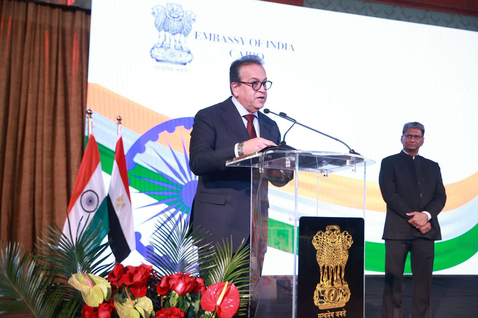 وخلال كلمته، نقل الدكتور خالد عبدالغفار تهنئة رئيس مجلس الوزراء الدكتور مصطفى مدبولي إلى حكومة وشعب الهند، مؤكدا أن عيد الجمهورية يمثل محطة تاريخية فارقة تجسد قيم السيادة والديمقراطية والوحدة الوطنية والتنمية، وهي قيم تتقاطع مع التجربة المصرية وتطلعات دول الجنوب.