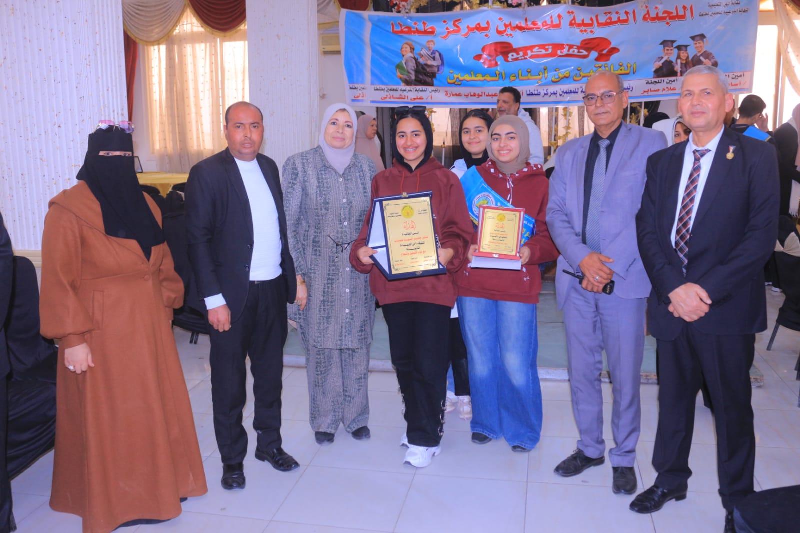 في أجواء احتفالية مليئة بالفخر والاعتزاز، نظّمت اللجنة النقابية للمعلمين بمركز طنطا حفلًا لتكريم 60 طالبًا وطالبة من أبناء المعلمين المتفوقين في الشهادات العامة، والأزهرية، والفنية، والجامعية، تقديرًا لتميزهم الدراسي وتحفيزًا لهم على مواصلة التفوق والنجاح.