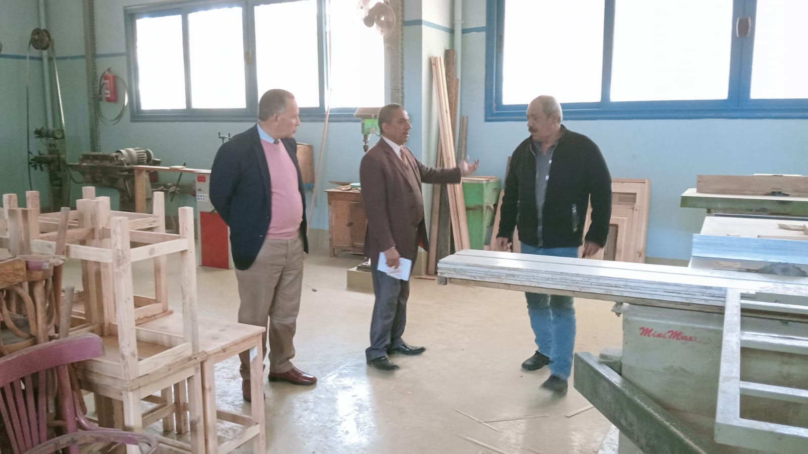 حيث أستهل وكيل الوزارة جولته بزيارة مدرسة اسيوط الثانوية الميكانيكية " تأسيس عسكرى " لمتابعة أعمال الصنيع بقسم الاخشاب والنجارة ضمن مبادرة تدوير الرواكد وتعظيم الاستفادة منها وتابع سير العمل ببعض أقسام و ورش المدرسة وتابع التدريب العملي للطلاب بورش النجارة وتشغيل الماكينات وكيفية تصنيعهم للمنتجات من خلال تدوير الرواكد لتصنيع " المقاعد وغرف النوم والباب والشباك والسلالم والترابيزات وخلايا النحل ومستلزمات المناحل " مشيرا الى ضرورة تسريع وتيرة العمل لاستغلال المخلفات الخشبية ورواكد المدارس الغير مستغلة و المتهالكة والتى تم تجميعها من مدارس المحافظة لتصنيع المنتجات الخشبية والأثاث المنزلى ومستلزمات الديكور الحديث تحت إشراف المعلمين المتخصصين بالمدرسة مشيدا بالمنتجات والمصنوعات وجودتها ورخص أسعارها بالمقارنة مع نظيراتها بالاسواق تمهيدا للمشاركة فى المعارض المختلفة .