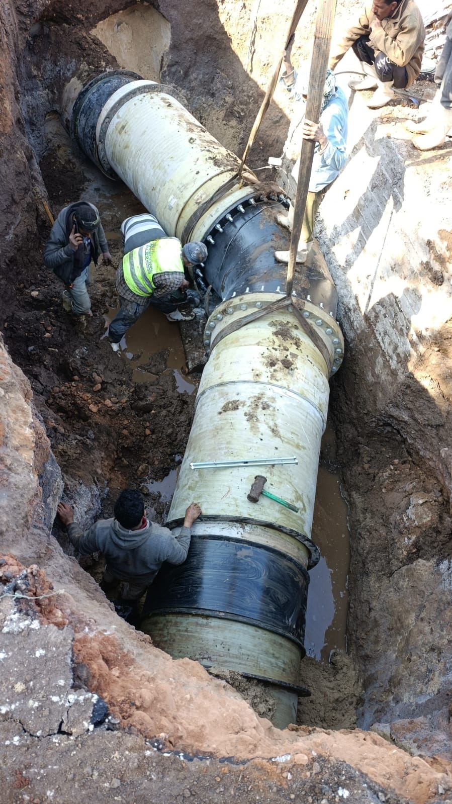 وتؤكد الشركة أن ما يتم تنفيذه حاليًا لا يقتصر على معالجة عطل طارئ، بل يمثل تدخلًا فنيًا شاملًا يستهدف تعزيز كفاءة الشبكة ورفع مستوى الاعتمادية التشغيلية للخط الحيوي، حيث يرجع سبب تأثر الخدمة إلى حدوث عطل مفاجئ بخط طرد مرشح الوليدية قطر 1000 مم، شمل كسر كوع قطر 1000 مم من نوع GRP، أن الأمر استلزم تدخلًا فنيًا عاجلًا، وقد دفعت الشركة بفرقها الفنية للعمل المتواصل على مدار الساعة، حيث تم تركيب محبس نوع "فراشة" لتقليل نطاق ومدة قطع المياه أثناء التنفيذ، إلى جانب تنفيذ أعمال تكسير للخرسانة المسلحة والعادية المحيطة بالخط، ورفع وفك الكوع التالف بالكامل، واستبداله بكوع جديد بكامل مشتملاته، ثم إعادة صب الخرسانة وتثبيت الوصلة لضمان استقرار الخط وكفاءة التشغيل واستدامة الخدمة.