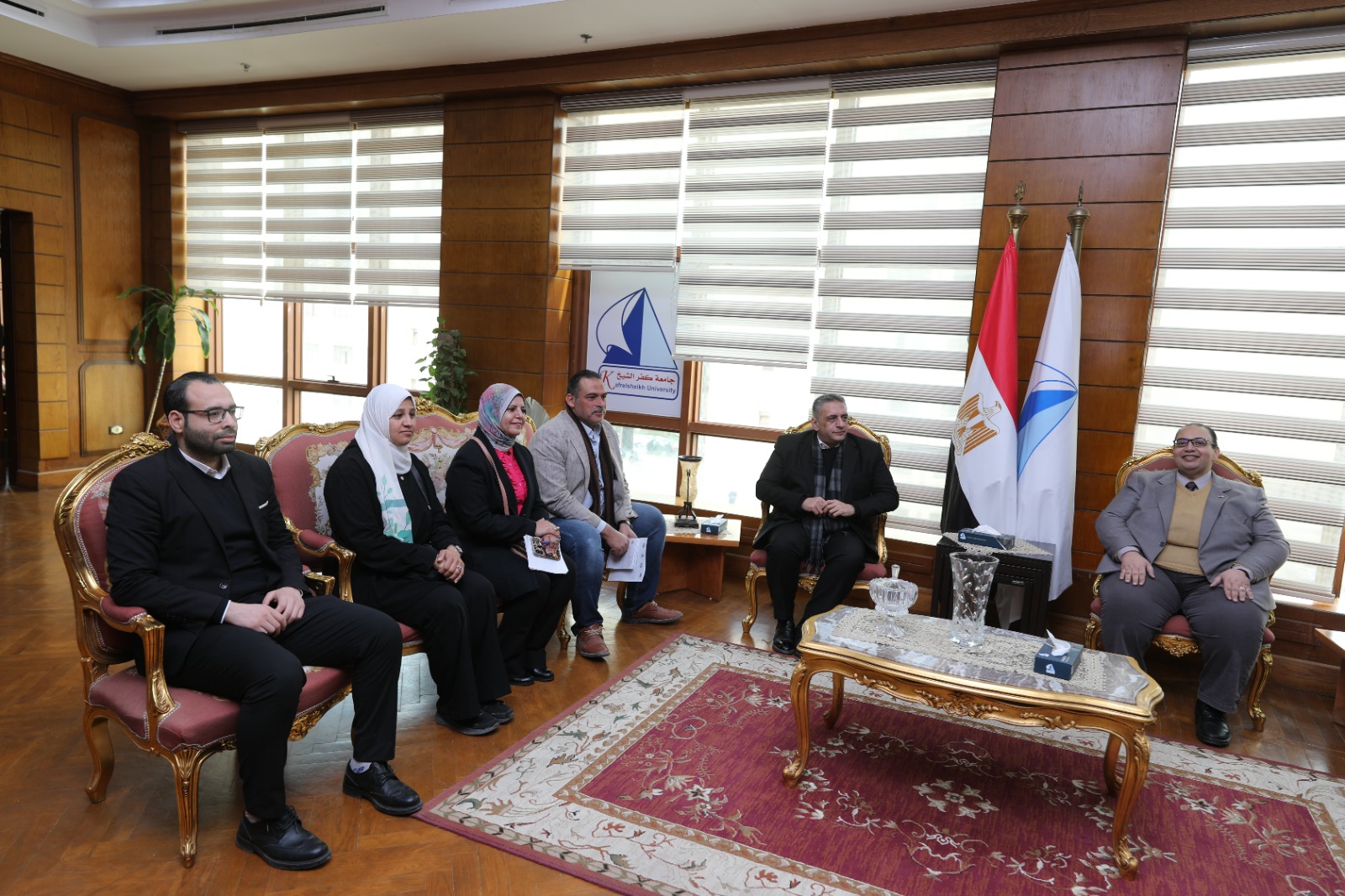 استقبل اليوم الأربعاء رئيس جامعة كفر الشيخ الدكتور يحيى عيد، الدكتور محمد أبو السعد وكيل وزارة الصحة بكفر الشيخ، والوفد المرافق له، لبحث آليات تفعيل بروتوكول التعاون المشترك بين الجامعة ومديرية الشئون الصحية بكفر الشيخ، إلى جانب المجلس القومي للسكان، في إطار دعم المنظومة الصحية وتعزيز الجهود التوعوية والتنموية بالمحافظة.
