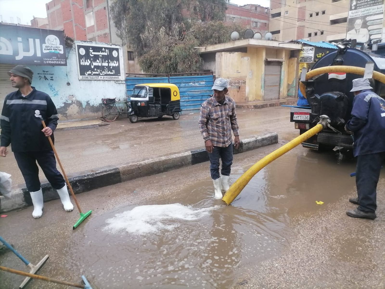 تواجد الدكتور جيهان القطان رئيس مركز ومدينة بسيون في مواقع العمل على رأس فريق المتابعة، لمتابعة الموقف ميدانيًا والتأكد من سرعة رفع المياه من الشوارع والطرق الرئيسية والفرعية، بما يحقق الاستجابة السريعة لأي تجمعات.