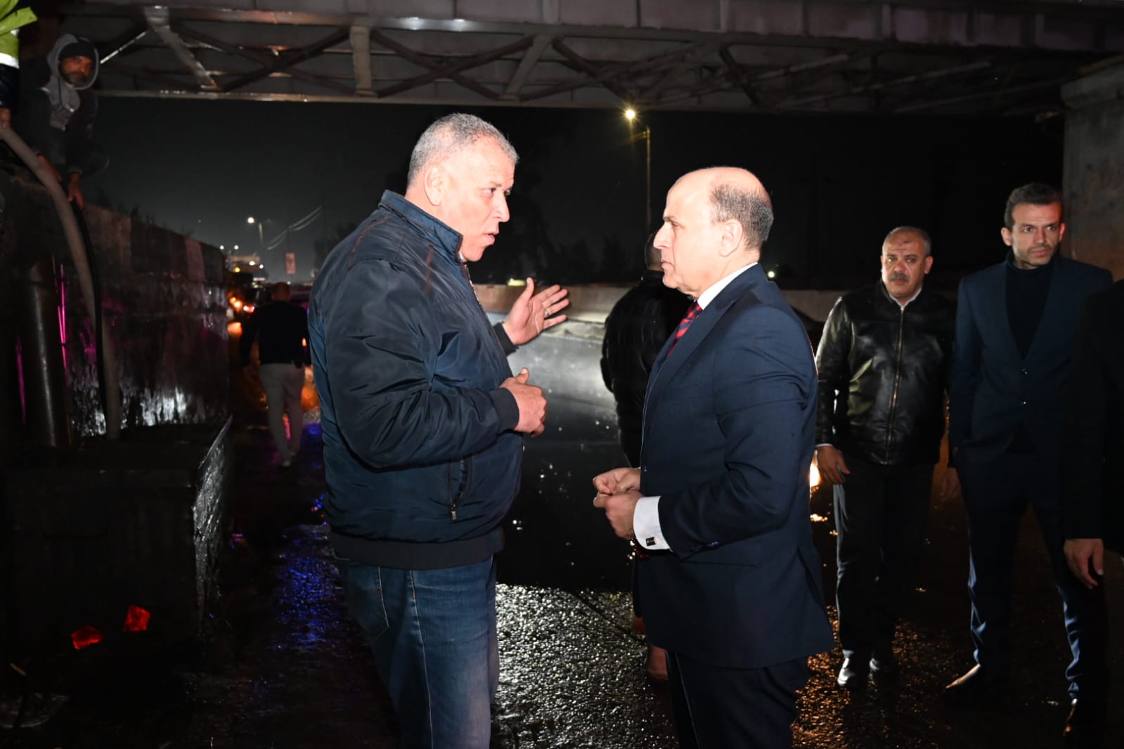 حرص المحافظ خلال جولته الليلية تحت الأمطار الغزيرة على توجيه التحية لفرق الطوارئ وموظفي النظافة، مشيدًا بتفانيهم في العمل رغم الظروف الجوية الصعبة، ومؤكدًا أن جهودهم تعكس التزام المحافظة بخدمة المواطنين والتعامل الفوري مع تداعيات الطقس السيئ.