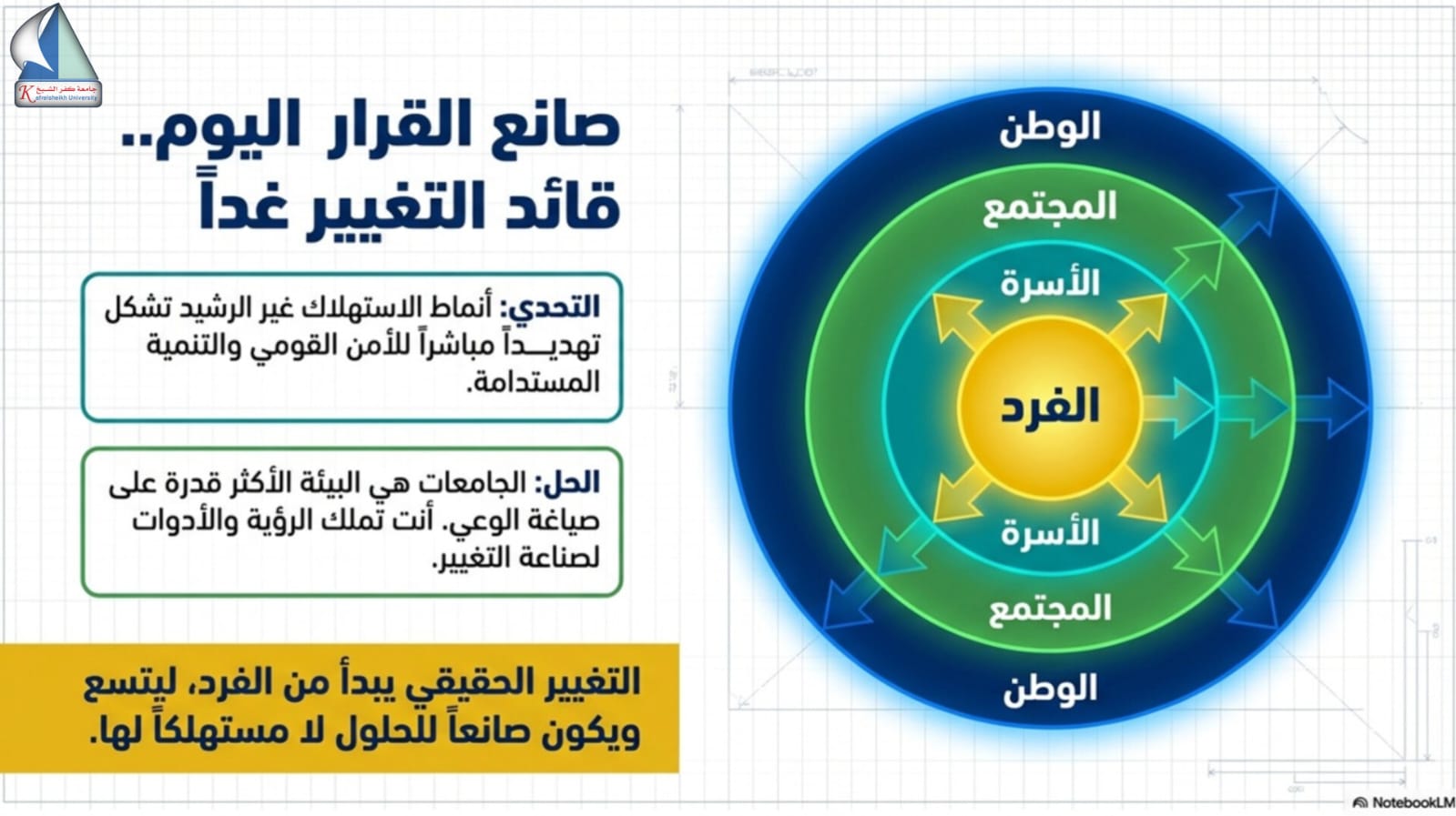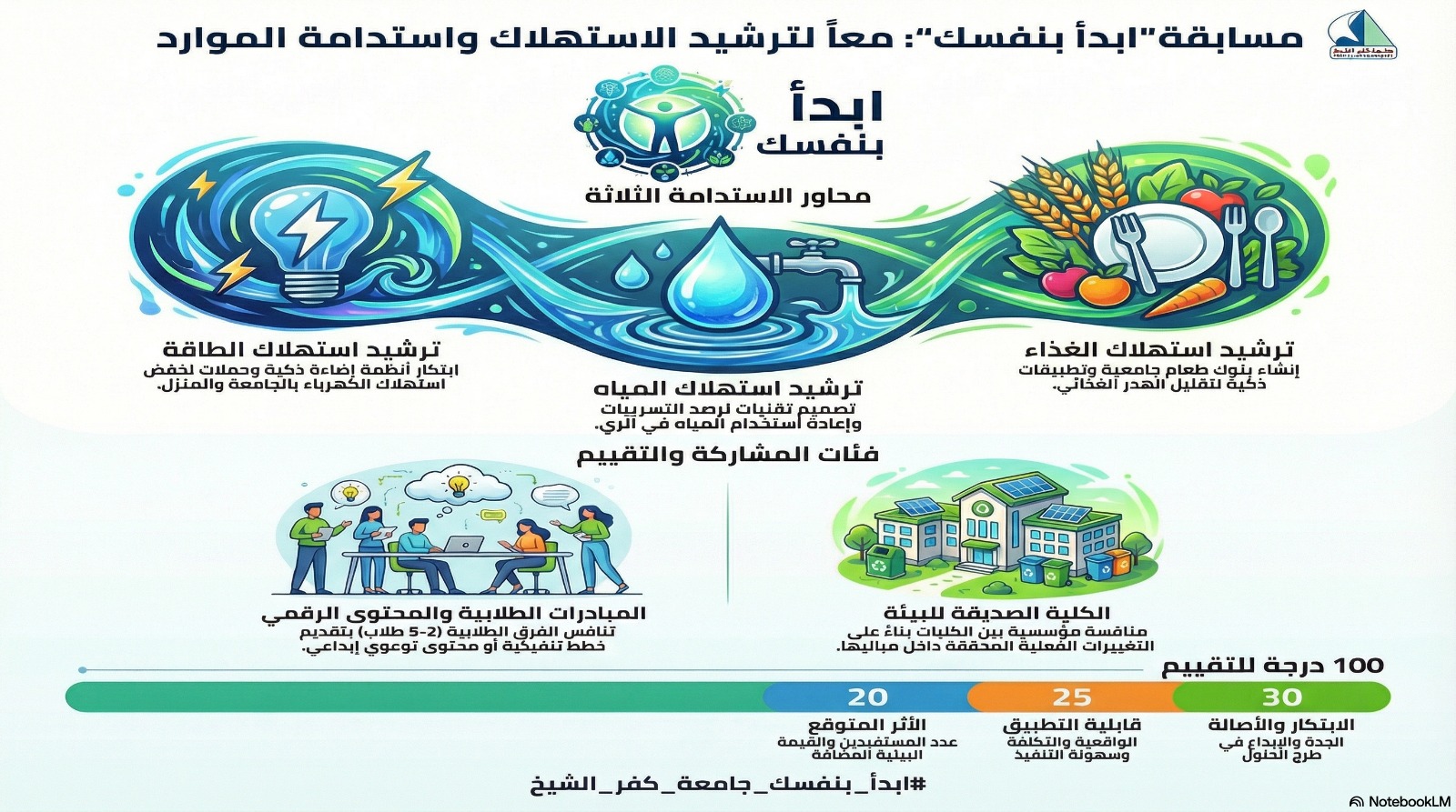 وأكد رئيس جامعة كفر الشيخ أن المبادرة تهدف لترسيخ مفاهيم الاستدامة البيئية بين الشباب باعتبارهم الركيزة الأساسية لبناء مستقبل أكثر وعيًا وكفاءة في استخدام الموارد، مشيرًا إلى أن "الطالب الجامعي اليوم هو صانع قرار الغد، ابدأ التغيير من نفسك".