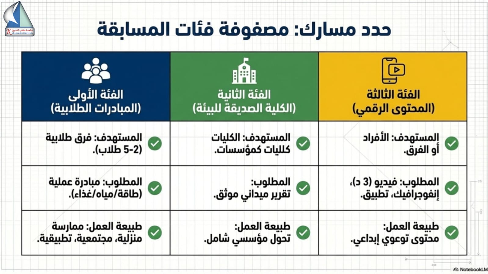 منافسة بين كليات الجامعة لتطبيق الممارسات البيئية المستدامة.