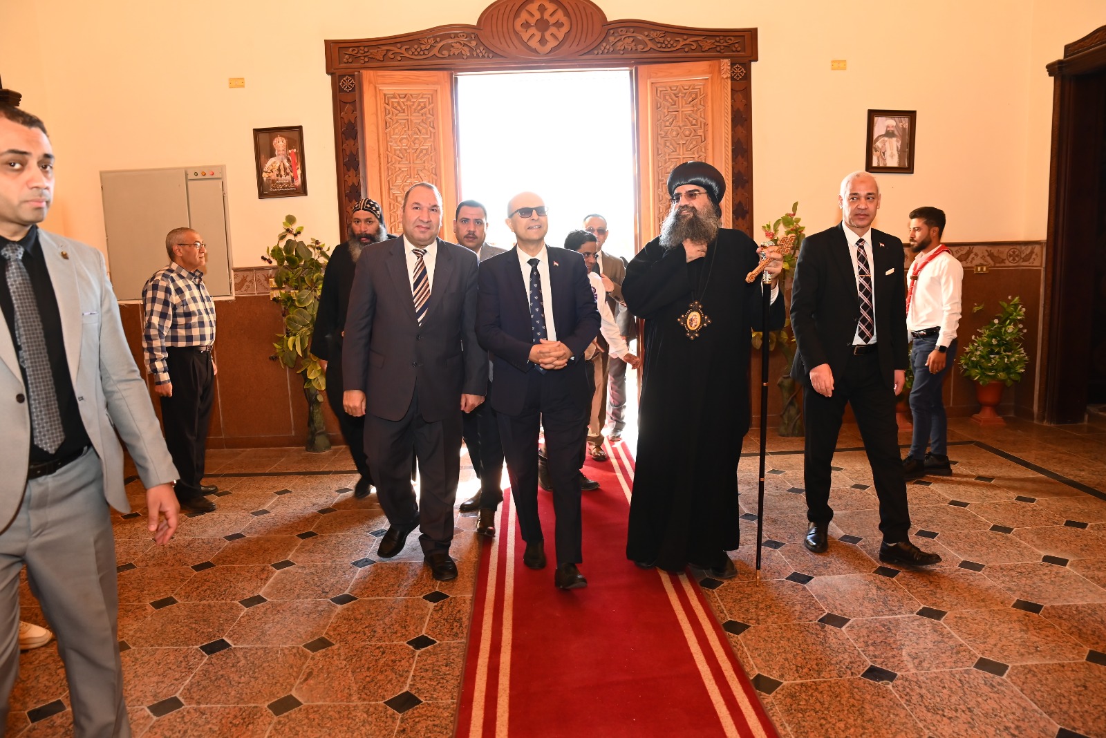 قام الدكتور أحمد المنشاوي، رئيس جامعة أسيوط، صباح اليوم الأحد، ١٢ ابريل الجاري، بزيارة مقر مطرانية أبنوب والفتح وأسيوط الجديدة "مركز خدمات الكاروز" بمدينة أسيوط الجديدة، وذلك برفقة الوفد المرافق له، وبحضور الدكتور محمد سيد، رئيس جامعة أسيوط الأهلية؛ لتقديم التهنئة لقداسة الأنبا بيسنتي، أسقف أبنوب والفتح وأسيوط الجديدة، ورئيس دير الشهيد مارمينا العامر بجبل أبنوب، وللآباء الأساقفة، بمناسبة عيد القيامة المجيد، في أجواء سادتها روح المحبة والتآخي.