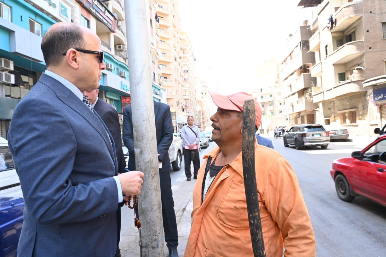 وتوقف المحافظ خلال جولته للتحدث مع عمال النظافة، مشيدًا بجهودهم المبذولة، ومؤكدًا أن ما يقومون به يمثل عنصرًا أساسيًا في الحفاظ على صحة المواطنين والمظهر الجمالي للمحافظة.