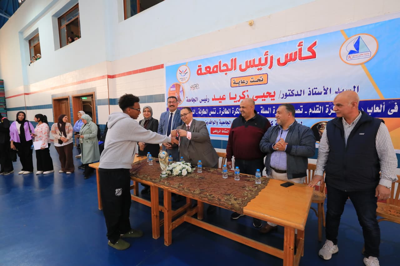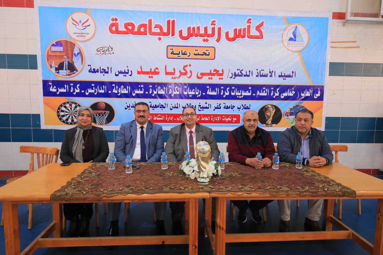بدأ اليوم الأربعاء رئيس جامعة كفر الشيخ الدكتور يحيى عيد حضور فعاليات حفل ختام بطولة كأس رئيس الجامعة، التي نظّمتها إدارة النشاط الرياضي بالإدارة العامة لرعاية الطلاب بالجامعة، بالصالة المغطاة بكلية علوم الرياضة، بمشاركة واسعة ومتميزة من الطلاب المصريين والطلاب الوافدين من مختلف الجنسيات بكليات الجامعة، وذلك في إطار حرص الجامعة على دعم الأنشطة الطلابية وتعزيز روح التنافس والتكامل الثقافي داخل الحرم الجامعي، بحضور الدكتور رشدي العدوي عميد كلية الزراعة ومنسق عام الأنشطة الطلابية بالجامعة، والدكتور أحمد زينه عميد كلية علوم الرياضة، ووكلاء كلية علوم الرياضة، وأعضاء هيئة التدريس من مختلف الكليات.