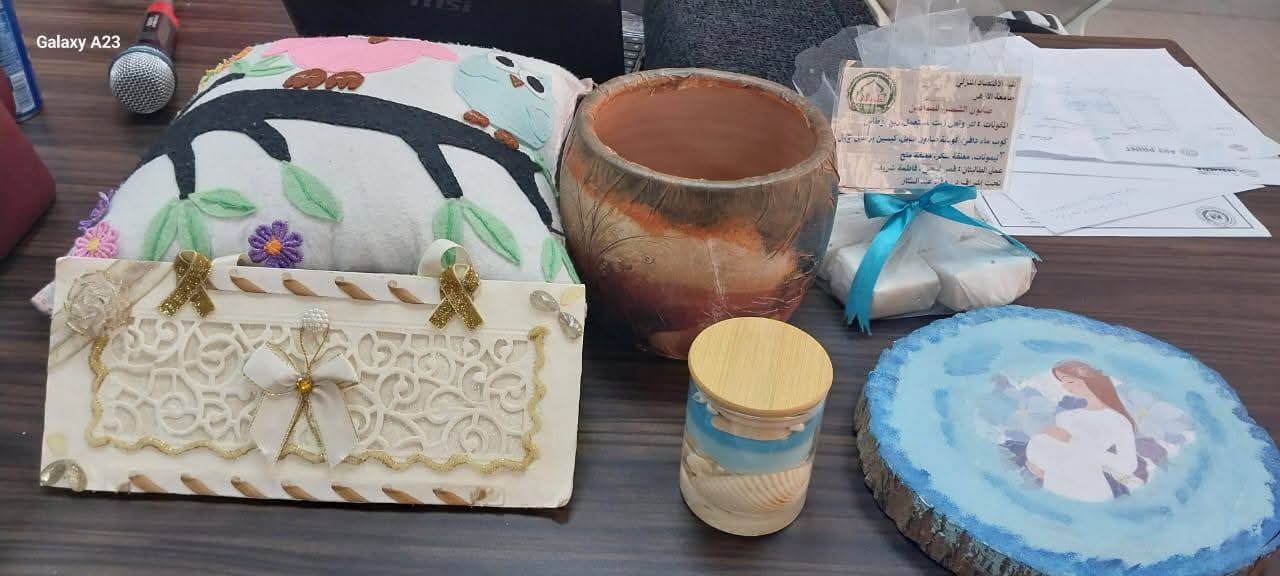 استعرضت الدكتور سماح جودة و الدكتورة هبة أستاذ مساعد بقسم مؤسسات إدارة الأسرة والطفل كلية الاقتصاد المنزلي بنواج جامعة الأزهر، عددًا من المشروعات صديقة البيئة، إلى جانب عرض نماذج من المشغولات اليدوية القائمة على إعادة تدوير المخلفات الورقية والكرتون وغيرها، مشيرة إلى أهمية دراسة الجدوى ومتطلبات السوق لضمان نجاح أي مشروع.