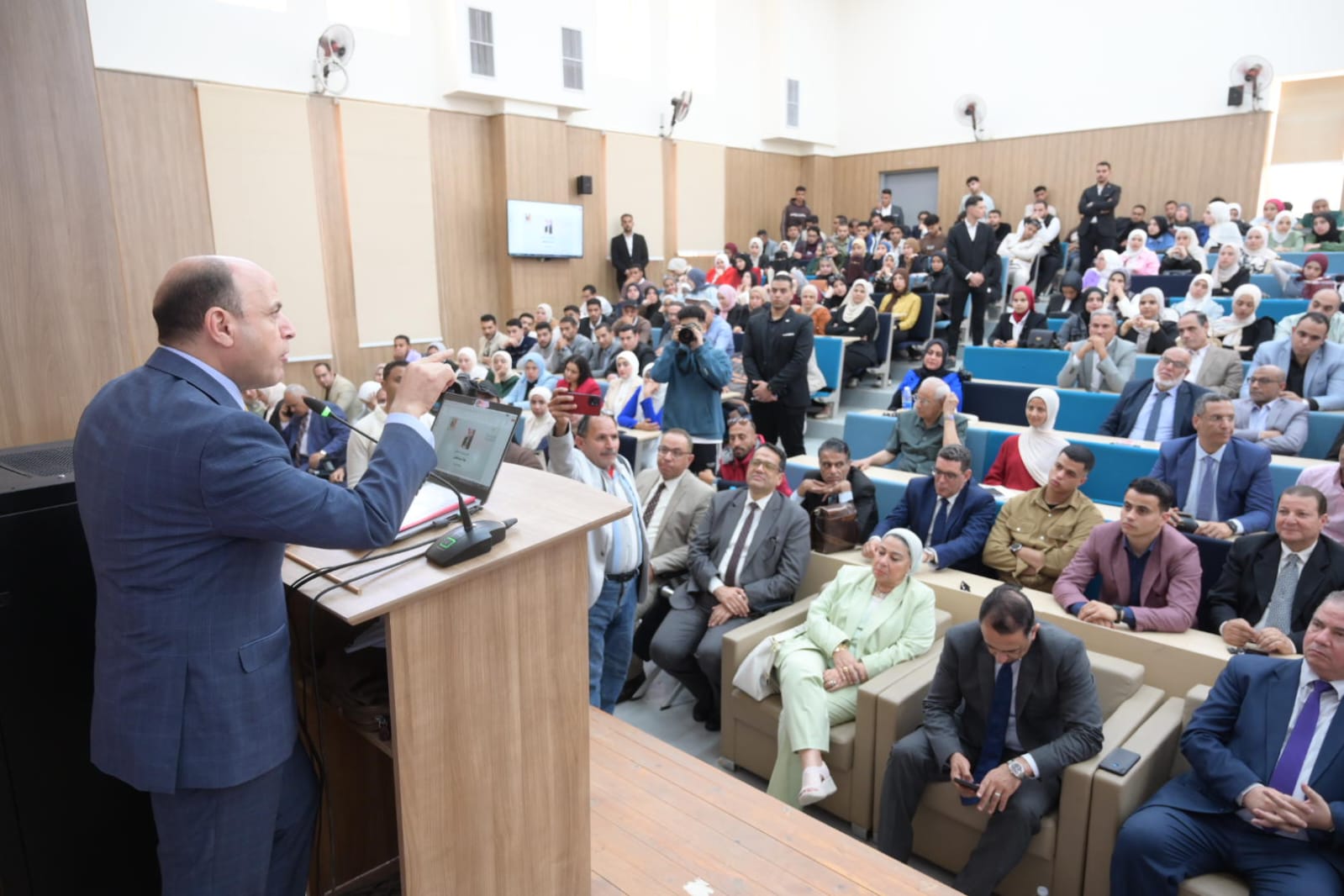 تفقد اللواء دكتور علاء عبد المعطي المعرض، واستمع إلى شرح من الطلاب حول مشروعاتهم التي قدمت حلولًا مبتكرة لتحديات الصناعة، معربًا عن فخره بما قدمه طلاب الدفعة الأولى، ومؤكدًا أن باكورة إنتاج طلاب دفعة 2026 تعكس مستوى متقدمًا من التدريب والابتكار، وتؤهل جيلًا قادرًا على دعم الاقتصاد الوطني والمشاركة في خطط التنمية.